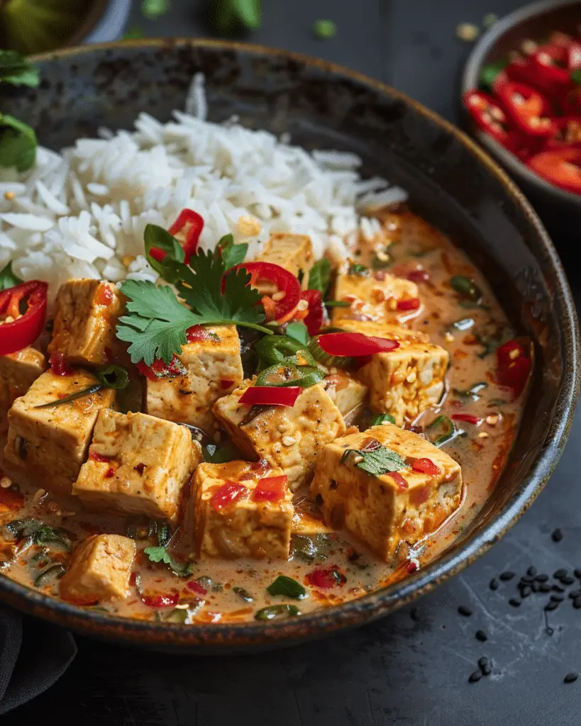 Spicy Tofu in Creamy Coconut Sauce a rich, flavorful dish that brings together crispy tofu and a silky coconut-based sauce …