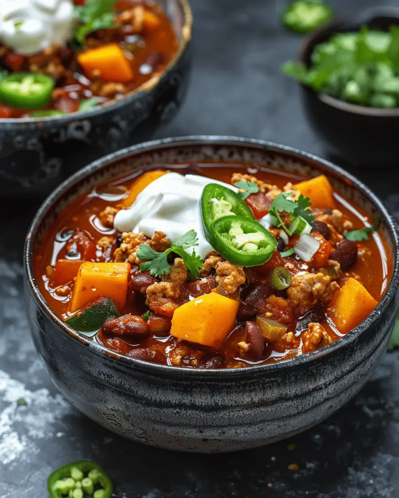 Turkey Sweet Potato Chili a cozy, hearty chili that brings together lean ground turkey, sweet potatoes, two kinds of beans, …