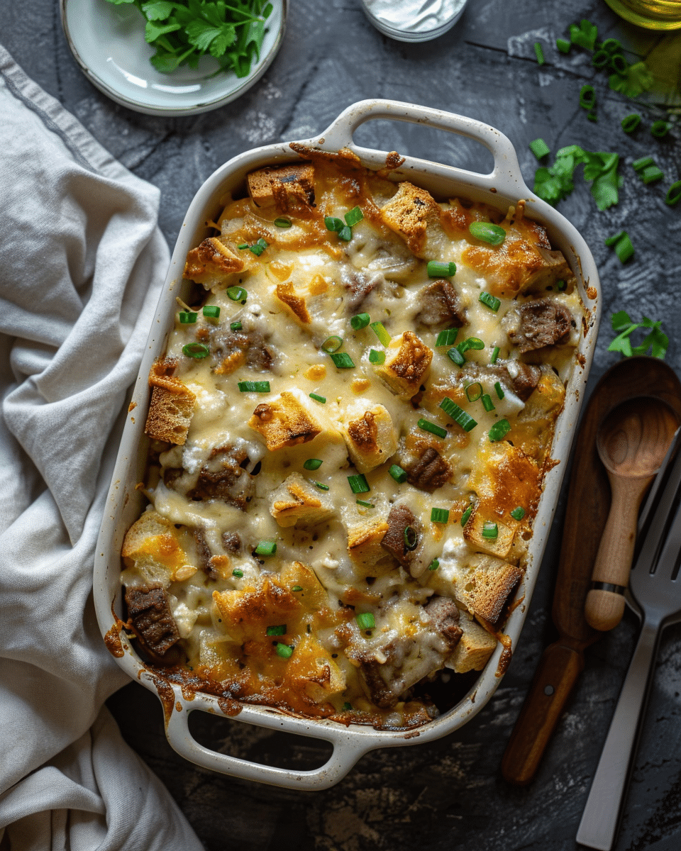 While this French Onion Soup Rice is best enjoyed fresh out of the oven, you can certainly prepare it in advance to streamline mealtime. Simply assemble the dish up to the point of baking, cover tightly with foil, and refrigerate until ready to bake. When you’re ready to serve, just pop it in the oven according to the recipe instructions, adding a few extra minutes to account for the chilled ingredients.
