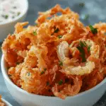 Golden, crispy mini blooming onions made in the air fryer deliver bold flavor and a satisfying crunch without deep frying. Served with a creamy dipping sauce, they are perfect for snacking, sharing, or entertaining.