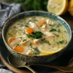 I make this Avgolemono Greek Lemon Chicken Soup when I crave something comforting yet bright and fresh. This creamy Greek lemon chicken soup combines tender shredded chicken, soft rice, fresh herbs, and a silky lemon-egg mixture that creates a naturally creamy texture without any cream. It is light, nourishing, and full of Mediterranean flavors.