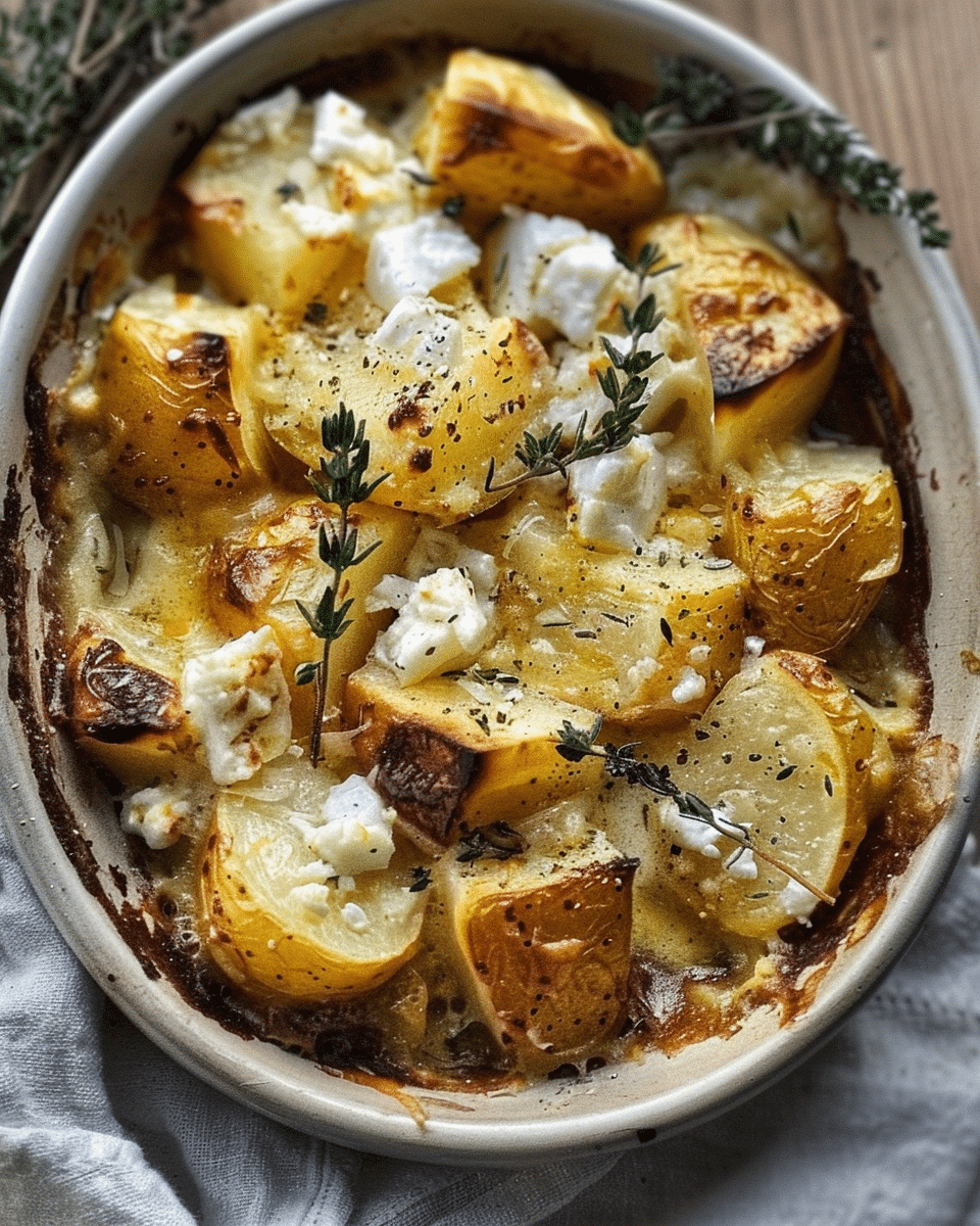 Creamy baked feta meets crispy golden potatoes in this easy, comforting Mediterranean-inspired dish. Perfect as a hearty side or vegetarian main, it combines tangy feta, garlicky herbs, and tender baby potatoes for a flavorful one-pan meal.