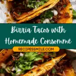 Flavor-packed and irresistibly tender, these Birria Tacos with Homemade Consommé are made with slow-cooked beef simmered in a rich, chili-infused consommé. I dip crispy, cheesy tacos right into the savory broth, and every bite delivers bold, comforting, authentic Mexican flavors. Perfect for weekend cooking or a crowd-pleasing taco night.