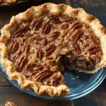 A rich and gooey Southern-inspired pecan pie made with brown sugar, maple syrup, and buttery pecans, perfect for holidays or special occasions.