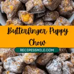 A no-bake, crispy chocolate-peanut butter snack mix loaded with crushed Butterfinger candy for a sweet, crunchy twist on the classic puppy chow. Perfect for parties, holidays, or anytime snacking.