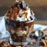 This Caramel Hot Fudge Brownie Sundae is a warm, gooey chocolate dessert with melted caramel and a rich fudge sauce beneath. Served with vanilla ice cream and fresh berries, it’s a cozy and indulgent treat.