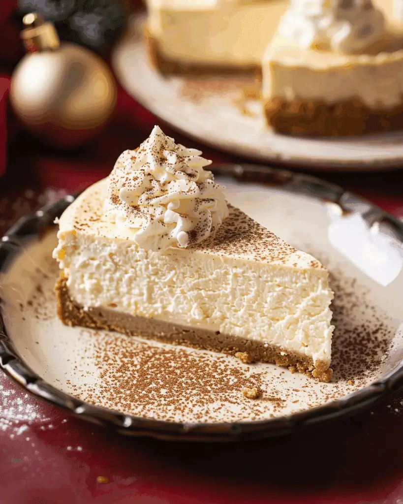 Eggnog Cheesecake with Nutmeg Whipped Cream a rich and creamy eggnog cheesecake is exactly what I look forward to during …