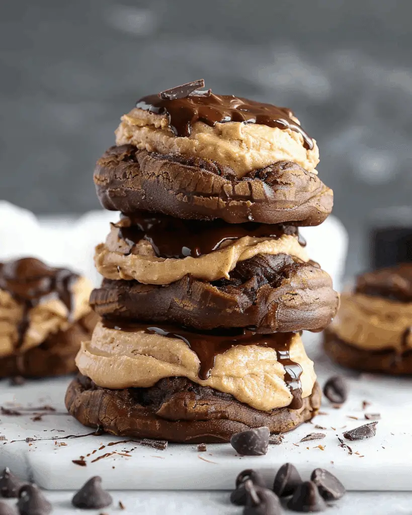 Peanut Butter & Chocolate Cream Puffs a light, airy choux pastry shells filled with a rich, silky peanut butter cream …