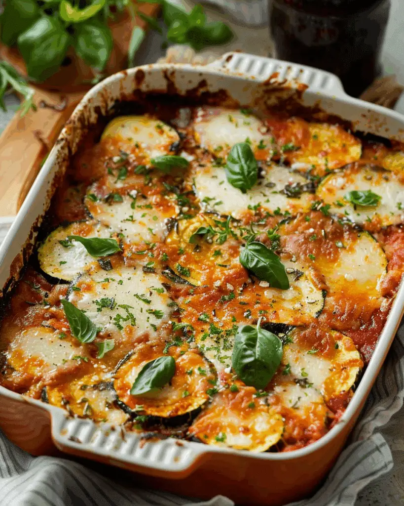 Italian Baked Zucchini a tender zucchini slices seasoned with garlic, Parmesan, and aromatic herbs, then baked until golden and just …