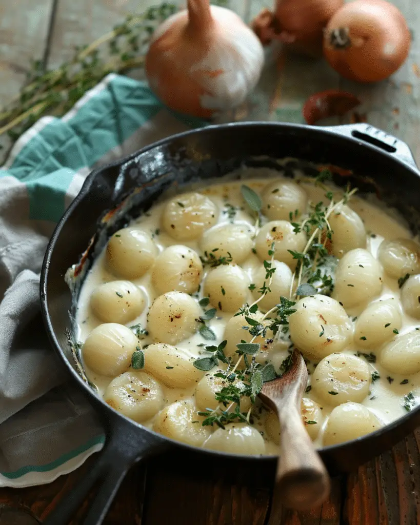 Creamed Pearl Onions with Sage and Thyme is a rich, herbaceous side dish that feels both comforting and sophisticated. Tender …