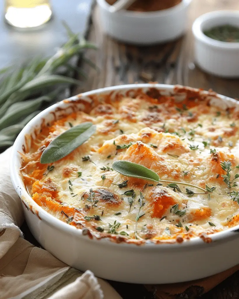 Savory Sweet Potato, Oat & Sage Gratin with Cheese