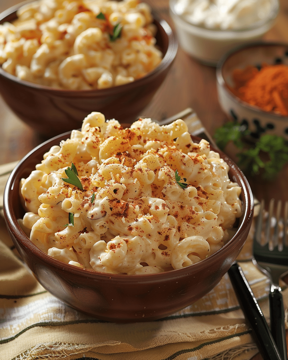 A creamy, tangy, and comforting macaroni salad made with sharp cheddar cheese, sour cream dressing, and crisp vegetables—perfect for cookouts, potlucks, and family dinners.