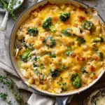 A cozy and comforting casserole made with tender chicken, steamed broccoli, and melty cheese, perfect for an easy and hearty weeknight dinner. Customizable with optional grains and toppings, it’s great for meal prep and reheats beautifully.