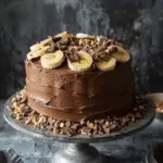 A moist and tender chocolate banana cake made with ripe bananas and cocoa powder, topped with a silky dark chocolate cream for a rich and comforting dessert.
