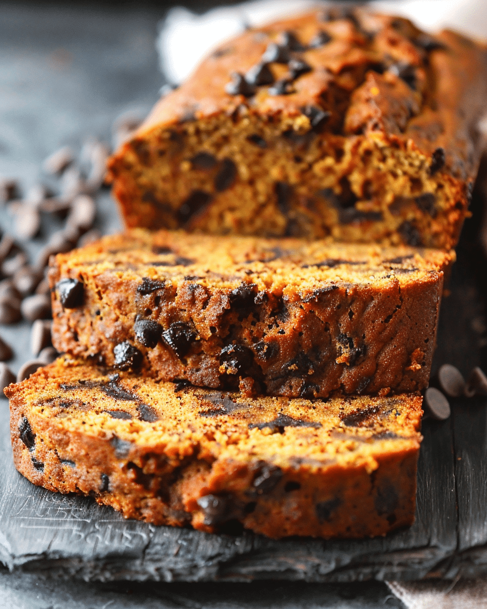 Moist and warmly spiced, this chocolate chip pumpkin bread is packed with rich pumpkin flavor and melty chocolate chips—perfect for fall mornings or festive gatherings.