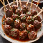 Savory and sweet, these classic Cocktail Meatballs are simmered in a rich blend of grape jelly and chili sauce. I find them to be the ultimate crowd-pleaser—perfect for holiday parties, potlucks, and game days. Their tangy-sweet glaze clings to tender beef meatballs, creating a bite-sized treat that disappears fast.