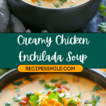 A rich, hearty soup inspired by chicken enchiladas, this Creamy Chicken Enchilada Soup combines shredded chicken, creamy cheese, and bold Mexican spices into a comforting one-pot meal.