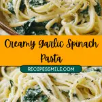 A quick and comforting Creamy Garlic Spinach Pasta made with tender pasta tossed in sautéed garlic, fresh spinach, olive oil, and Parmesan, finished with a splash of pasta water for a light, silky sauce.