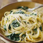 A quick and comforting Creamy Garlic Spinach Pasta made with tender pasta tossed in sautéed garlic, fresh spinach, olive oil, and Parmesan, finished with a splash of pasta water for a light, silky sauce.