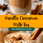 A cozy and comforting creamy vanilla cinnamon milk tea made with black tea, warm spices, and your choice of milk. It’s simple to make, customizable, and perfect for relaxing mornings or winding down in the evening.