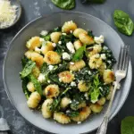 Crispy golden gnocchi tossed with wilted spinach, tangy feta, and bright lemon for a quick, comforting meal with fresh Mediterranean flavor.