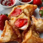 Crispy, golden wonton bites filled with rich cheesecake and juicy strawberries, deep-fried to perfection and ideal for parties or a sweet indulgence anytime.