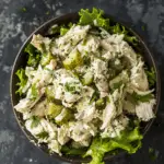 A creamy, tangy Dill Pickle Chicken Salad made with tender chicken, crunchy dill pickles, fresh herbs, and a flavorful mayonnaise dressing. Perfect for sandwiches, lettuce wraps, or meal prep.