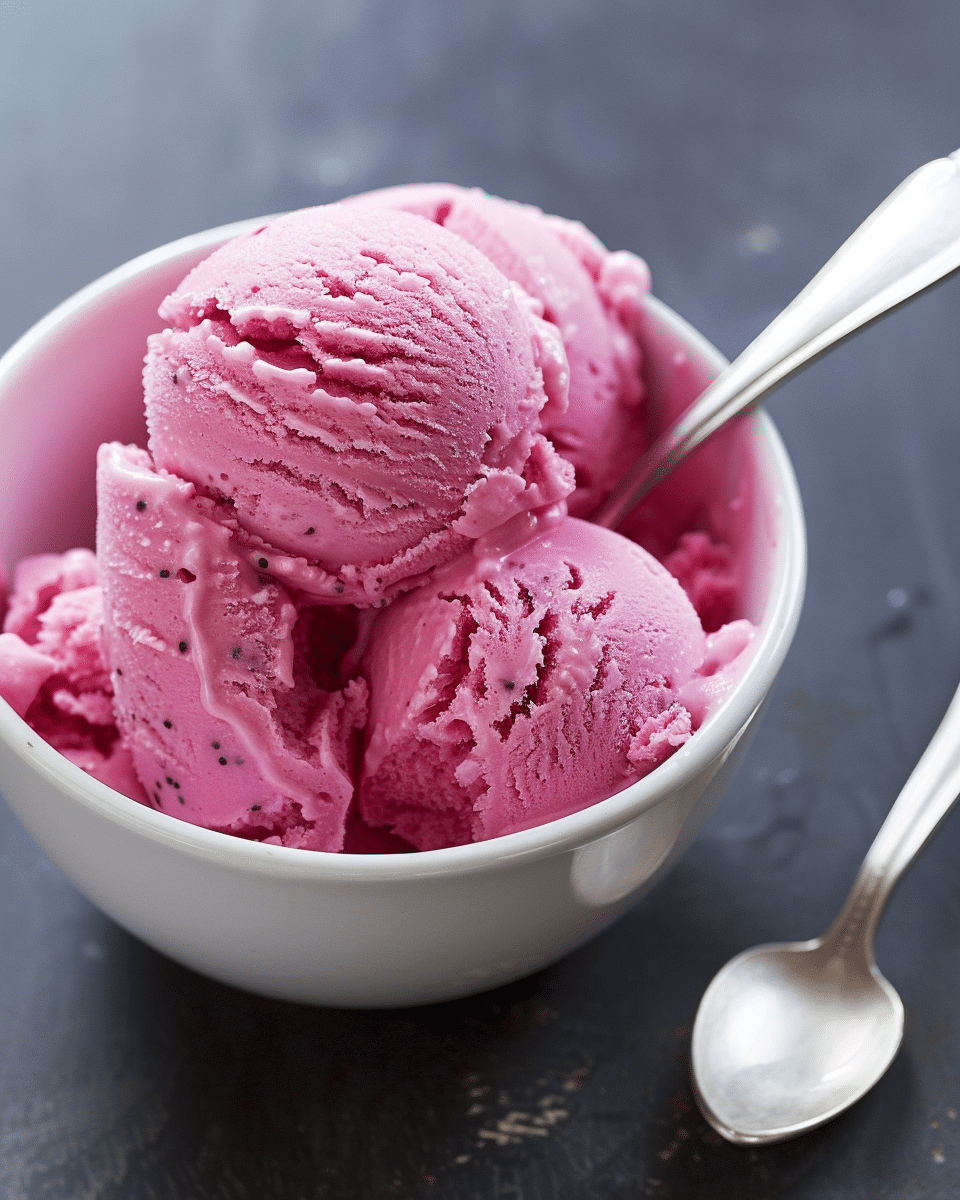 A vibrant, refreshing Dragon Fruit Sorbet made with fresh dragon fruit, lime juice, and simple syrup. This smooth, naturally dairy-free dessert is light, tropical, and perfect for a cooling treat.