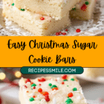 These Easy Christmas Sugar Cookie Bars are soft, buttery, and finished with a thick layer of creamy frosting and festive sprinkles. They’re everything I love about classic sugar cookies, but without the rolling, cutting, or waiting between batches. Baked in one pan and cut into neat squares, these bars are the perfect addition to any holiday dessert tray.