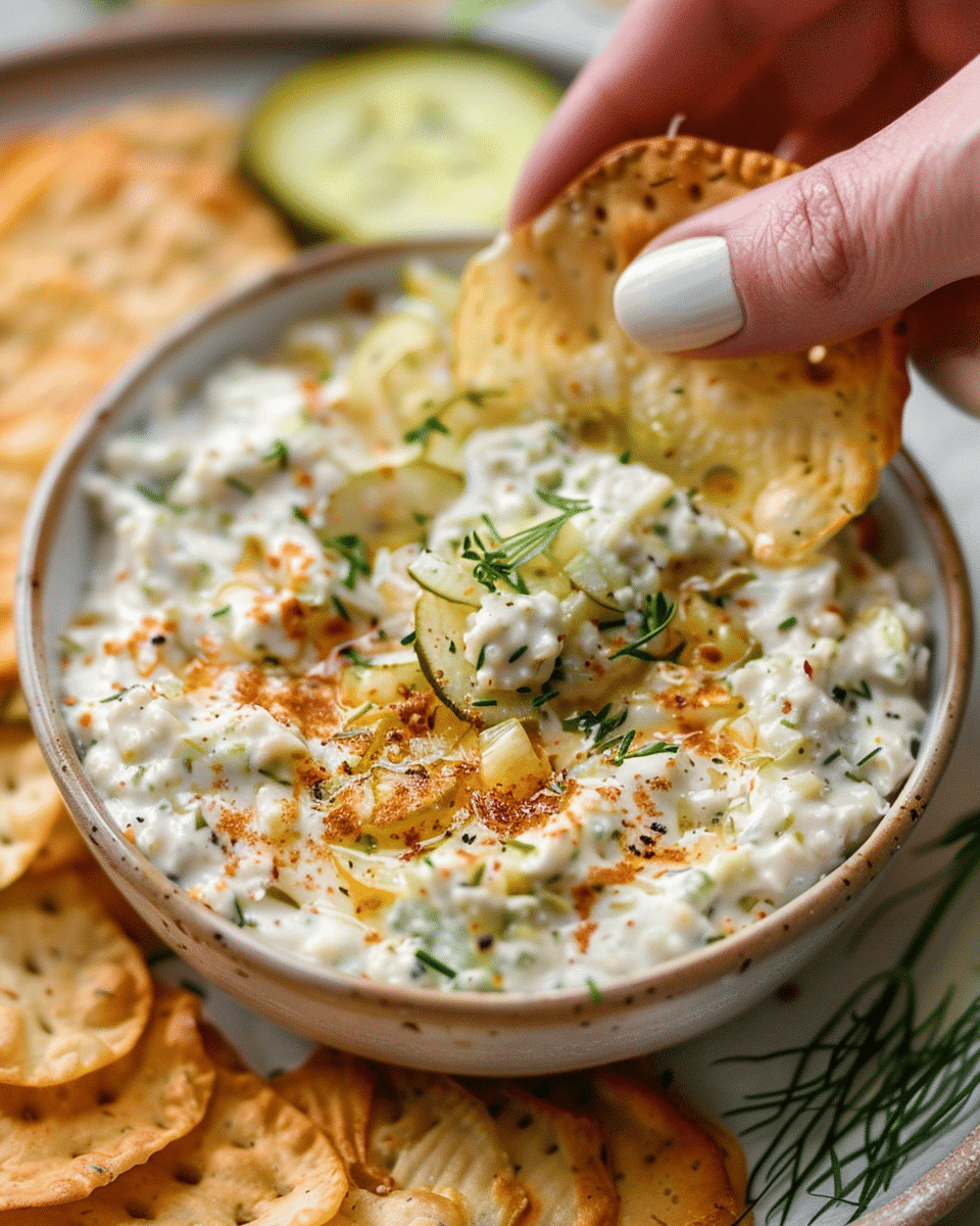 A creamy, tangy, no-bake dip inspired by Southern fried pickles, made in just 15 minutes and easily adaptable for dairy-free diets.