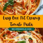 This Easy One Pot Creamy Tomato Pasta is a rich, comforting dish made with pantry staples like crushed tomatoes, broth, and pasta. It cooks all in one pot for minimal cleanup and maximum flavor, making it perfect for a cozy weeknight meal.