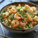 This easy shrimp fried rice is a quick and flavorful meal made with tender shrimp, crispy vegetables, fluffy rice, and a savory sauce blend. Perfect for busy weeknights, it’s a satisfying takeout-style dish made in one skillet.