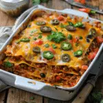 A hearty Tex-Mex casserole layered with tortillas, seasoned beef, beans, and melted cheese, baked until bubbly and satisfying. Perfect for a quick, family-friendly dinner.