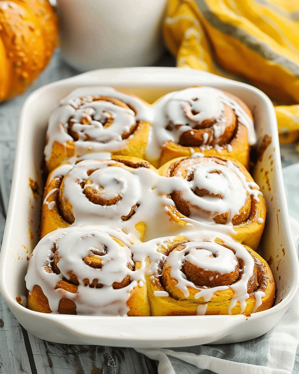 I love how this recipe blends the fluffiness of traditional cinnamon rolls with the unmistakable flavor of pumpkin and warm spices. The dough is tender and enriched with pumpkin, making each bite soft and flavorful. The filling is rich and spiced, and the cream cheese frosting adds just the right touch of tangy sweetness. Whether I’m sharing these for a holiday breakfast or enjoying one with my morning coffee, they never fail to impress.