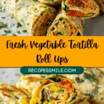 These fresh vegetable tortilla roll ups are a colorful, crunchy, and creamy snack made with soft tortillas, smooth cream cheese, and vibrant vegetables. They are quick to prepare and perfect for appetizers, lunchboxes, or light meals.
