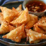 To fry them, I heat about 2 inches of oil in a pot to 350°F (175°C). I fry the wontons in batches for 2–3 minutes until they’re golden brown and crispy, taking care not to overcrowd the pot. Once fried, I transfer them to a paper towel-lined plate to drain.