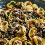 Tender cheese tortellini tossed with juicy ground beef in a rich garlic butter sauce — this Garlic Butter Beef Tortellini is my go-to for a comforting, hearty dinner that comes together in just 20 minutes. It’s satisfying, savory, and perfect for those busy weeknights when I want a delicious meal without spending hours in the kitchen.