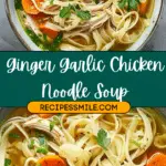 This Ginger Garlic Chicken Noodle Soup is a comforting, flavorful bowl packed with tender chicken, aromatic garlic and ginger, and silky rice noodles in a savory broth. It’s soothing, nourishing, and quick to make—perfect for cold days or when you’re feeling under the weather.