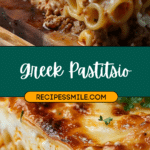 Greek Pastitsio is a comforting layered pasta casserole featuring tender pasta, cinnamon-spiced beef sauce, and a rich, creamy béchamel topping baked until golden. Each slice reveals beautiful layers and bold Mediterranean flavors.