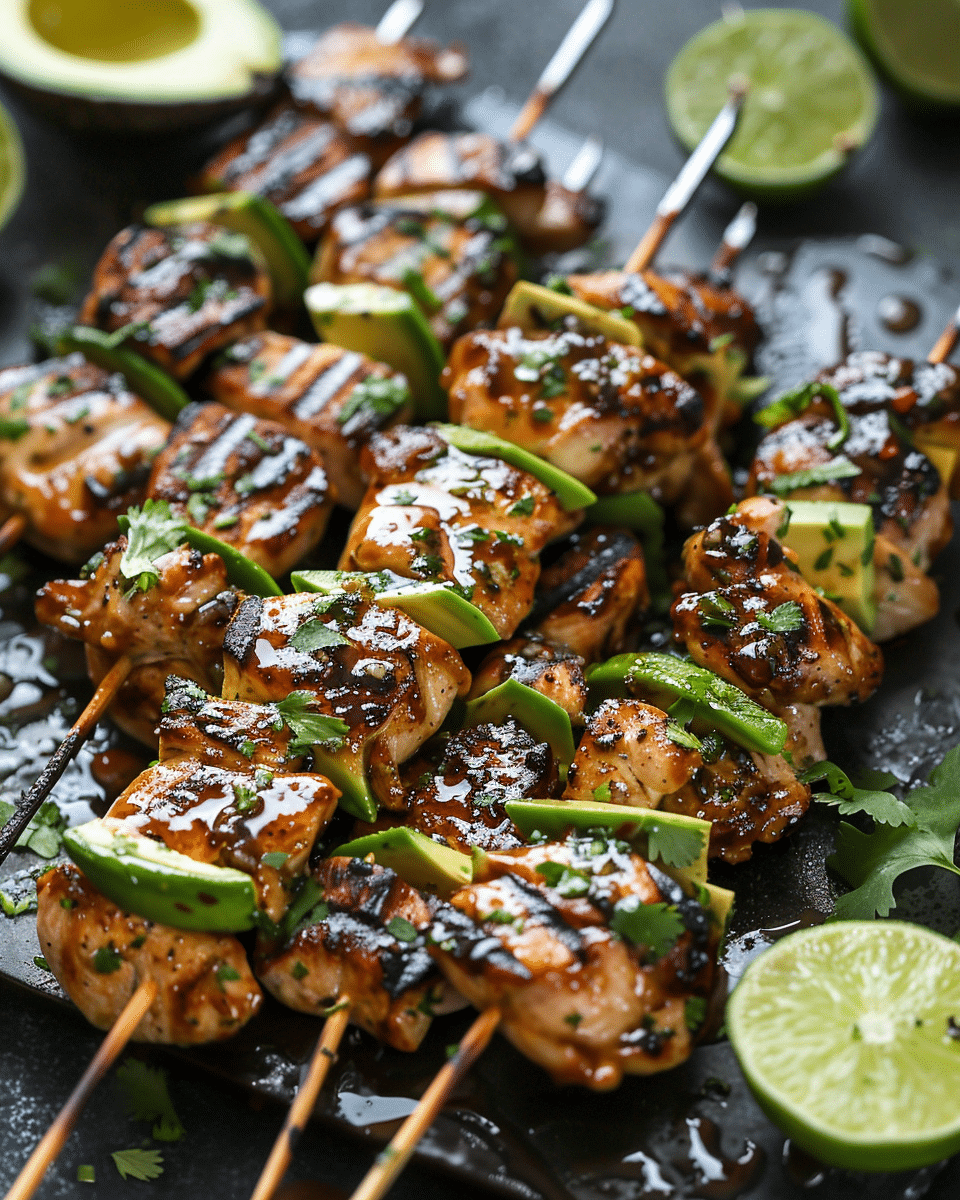 Grilled Honey Lime Chicken & Avocado Skewers
