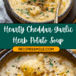 Creamy and comforting, this Hearty Cheddar Garlic Herb Potato Soup is packed with Yukon Gold potatoes, sharp cheddar cheese, garlic, and herbs. A cozy, one-pot meal perfect for chilly nights.