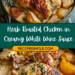 Herb Roasted Chicken in Creamy White Wine Sauce a golden, crispy-skinned chicken roasted with fresh herbs and finished in a silky white wine cream sauce — this rustic and comforting dish brings elegance to my table without much effort. It’s the kind of meal I make when I want something hearty yet refined, ideal for cozy evenings or casual dinner parties.