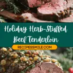 This holiday herb-stuffed beef tenderloin is a festive and elegant main course featuring juicy beef filled with a savory herb and breadcrumb stuffing — perfect for special occasions and holiday gatherings.