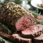 This holiday herb-stuffed beef tenderloin is a festive and elegant main course featuring juicy beef filled with a savory herb and breadcrumb stuffing — perfect for special occasions and holiday gatherings.