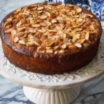 A moist and warmly spiced cake made with honey, almond flour, and soft chopped dates, topped with crunchy sliced almonds. Perfect for a cozy dessert or a comforting snack with tea or coffee.