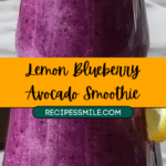 A creamy, refreshing Lemon Blueberry Avocado Smoothie made with wholesome ingredients, blending rich avocado, sweet blueberries, and bright lemon juice for a nourishing and naturally dairy-free drink.