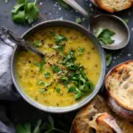 A bright and comforting lemon lentil soup made with tender red lentils, aromatic vegetables, warm spices, and fresh lemon juice. This nourishing one-pot soup is light, flavorful, and naturally creamy without any dairy.