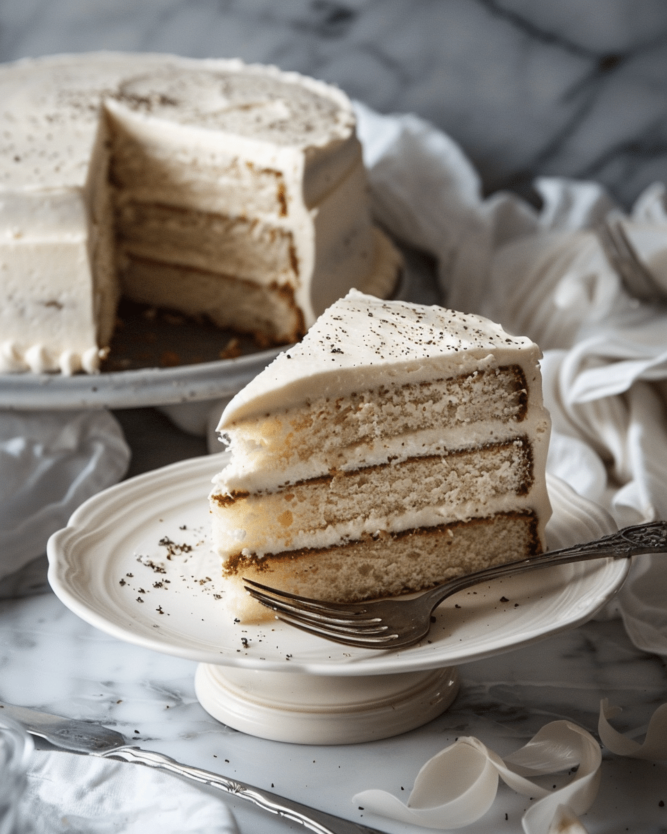 An elegant and fragrant layer cake inspired by the classic London Fog latte, infused with Earl Grey tea and vanilla, and finished with silky vanilla bean buttercream.