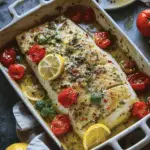 A light and flavorful Mediterranean baked fish dish featuring tender white fish, juicy cherry tomatoes, briny olives, and fresh herbs all roasted together in one pan. Bright lemon and olive oil create a simple, wholesome meal that is both satisfying and easy to prepare.