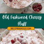 Old Fashioned Cherry Fluff is a creamy, no-bake dessert salad made with cherry pie filling, crushed pineapple, sweetened condensed milk, whipped topping, marshmallows, and pecans. This light and fluffy treat is perfect for holidays, potlucks, and make-ahead gatherings.